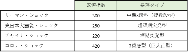 【重要】暴落タイプ別の底値目安(過去事例に基づく分類)