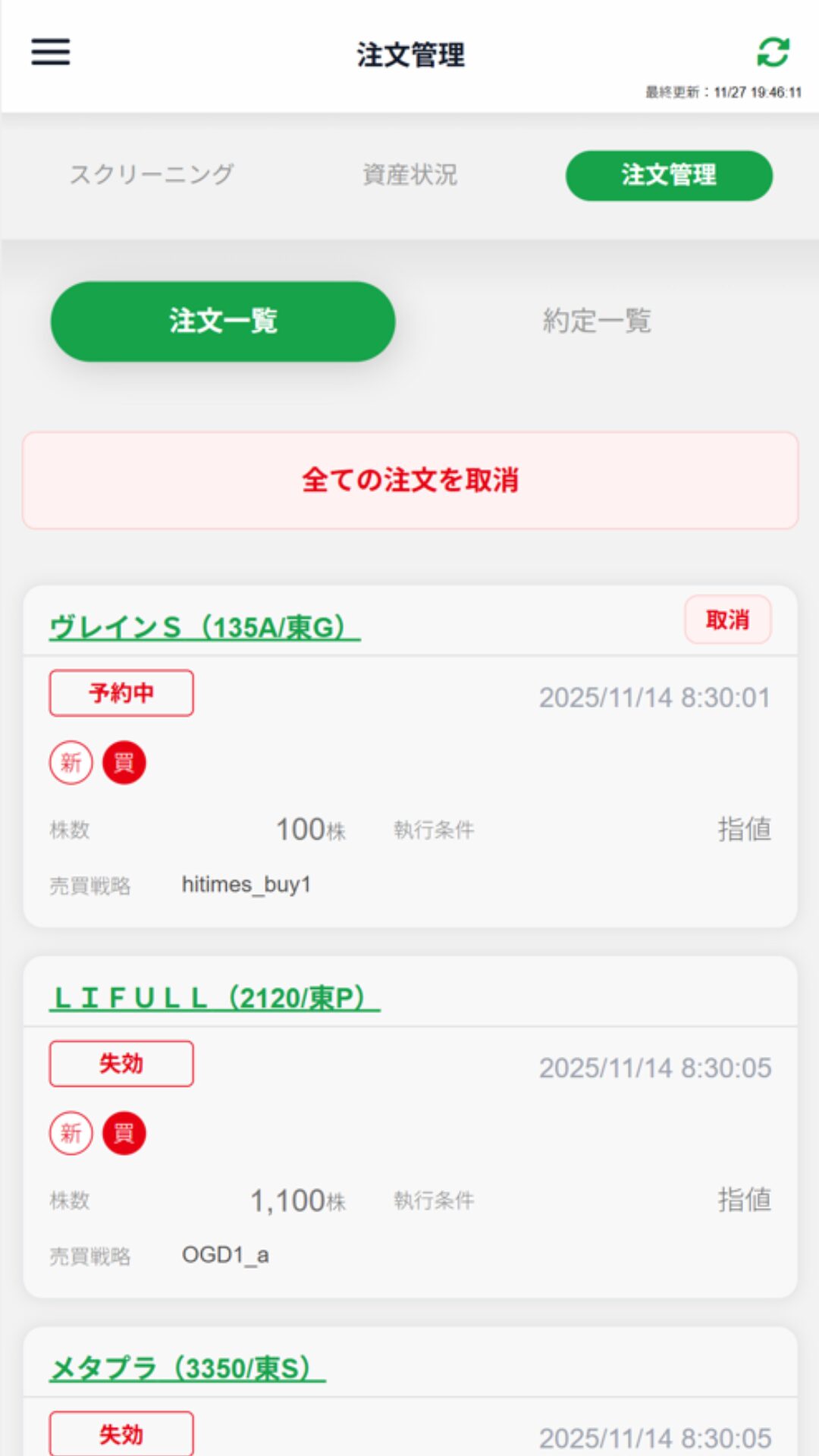 急な悪材料やニュースが出た銘柄も、あなたの判断で発注前に除外可能です。
