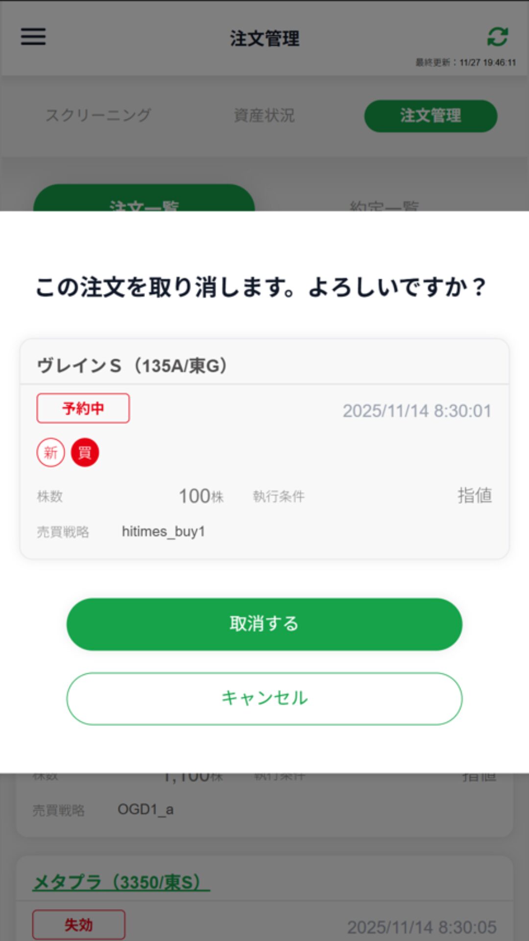 新機能①:スクリーニング銘柄ごとに「発注前に取消せる」