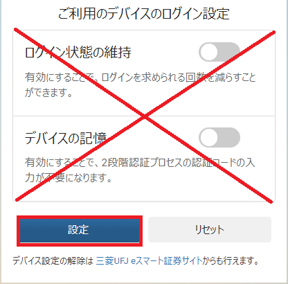 *ログイン状態の維持とデバイスの記憶は絶対に変更しないようにそのままの状態にしてください
