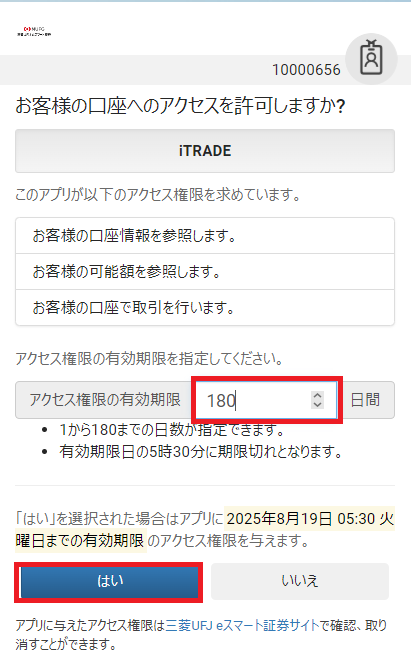 手順.4|180 日を設定(長い日数を推奨)して「はい」を選択