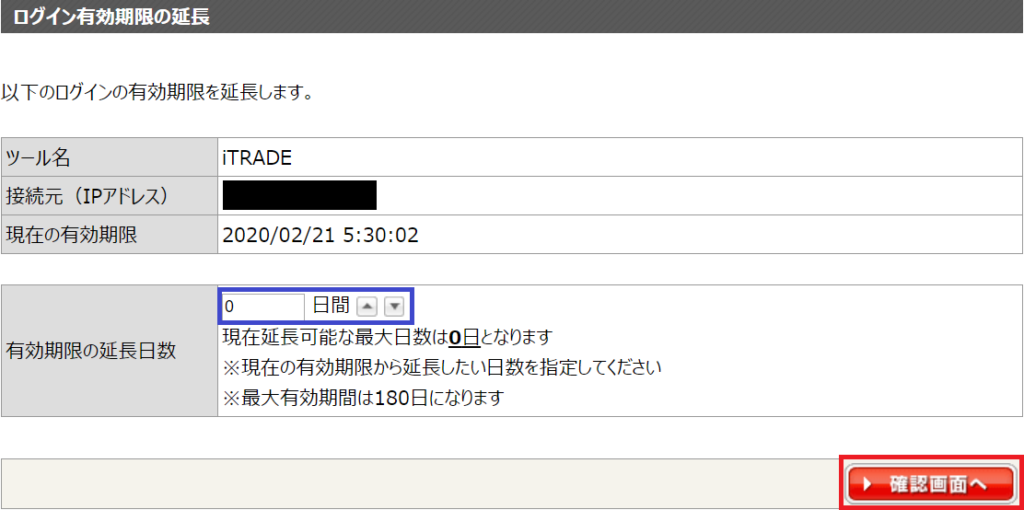手順.3|青枠の延長期間を設定(可能な限り長い期間を推奨)し、「確認画面へ」選択後、延長完了のメッセージが表示されたら完了です