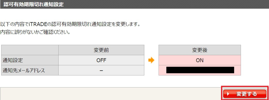 手順.7|内容に問題が無ければ「変更する」ボタンを選択
