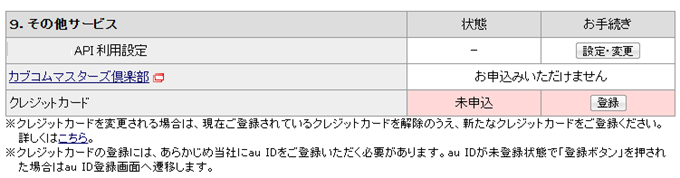「設定・申込」→「電子契約」のページに進み、ページ内「9.その他サービス」→「API連携サービス利用設定」→「設定・変更」ボタンを選択すると、下のような一覧がページ下部に表示されます