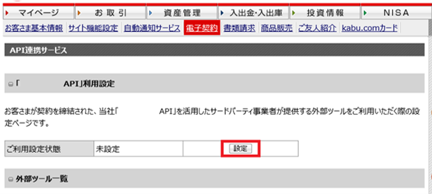 以下の通り、「三菱UFJ eスマート証券API」など設定状況によって手順が変わります。以下の3つから、該当の状況を選択し手順にお進みください