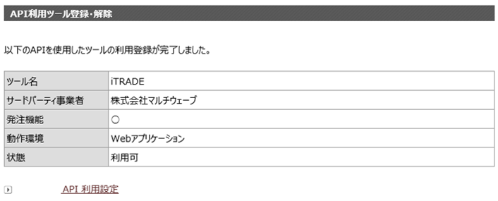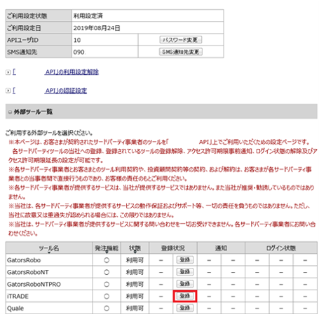 - API の有効期限が切れると「じぶんで運用ロボ」でのトレードが出来なくなります。メールの通知など機会に有効期限が切れないよう、ご注意くださいませ。