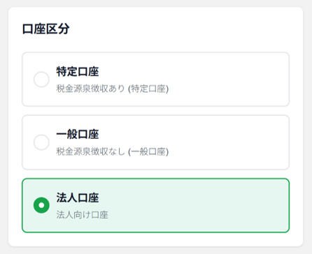 下記の画面が表示されたら、三菱UFJ e スマート証券の口座区分を選択します(ご参考|口座区分の確認方法はコチラ)