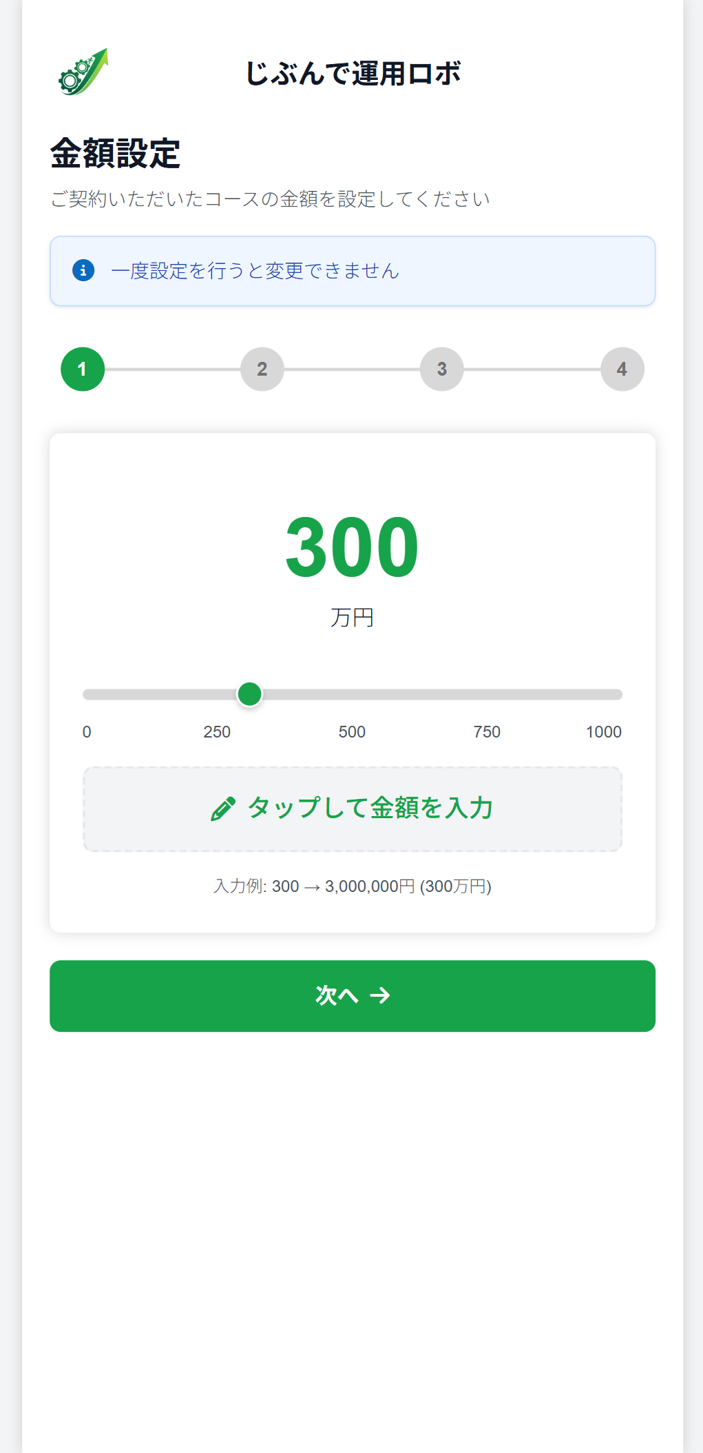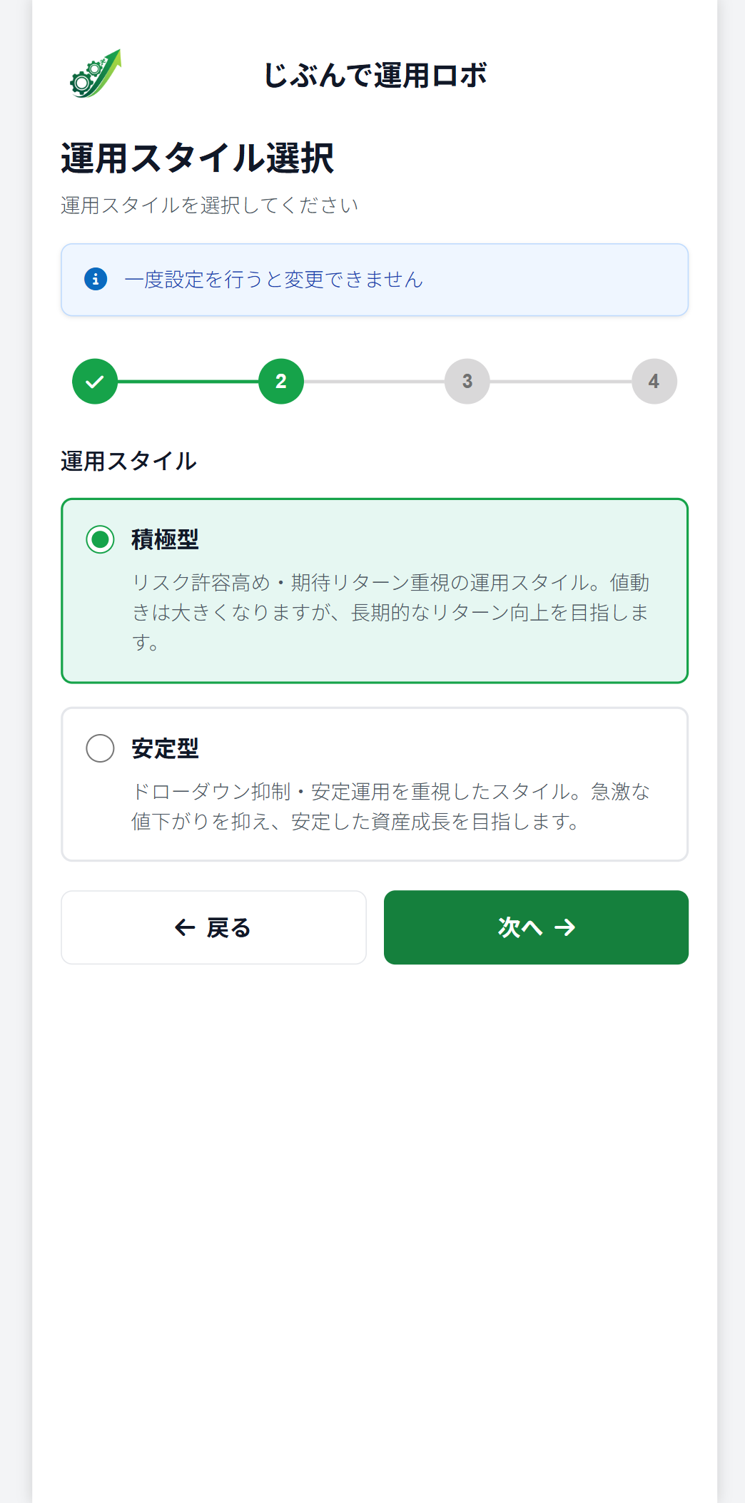 以上で「じぶんで運用ロボ」初期設定は完了です